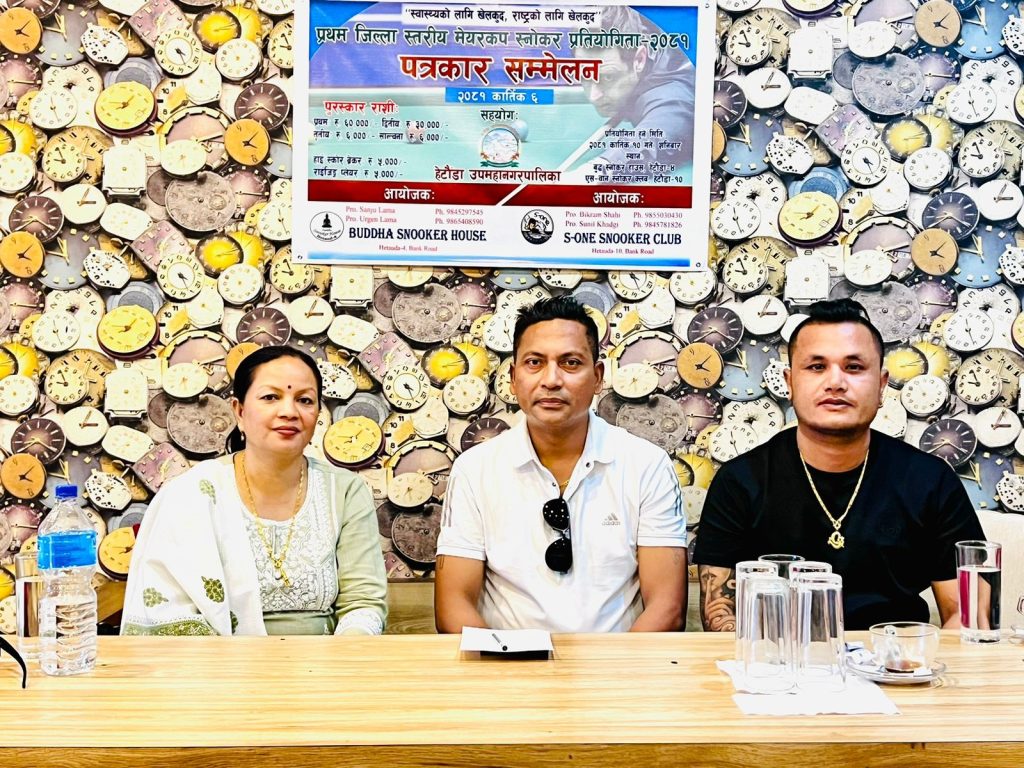 प्रथम जिल्ला स्तरीय मेयरकप स्नोकर प्रतियोगिता हुने भएको छ । हेटौंडा उपमहानगरपालिकाको सहयोगमा शनिबारदेखी प्रतियोगिता हुने भएको हो । बुद्ध स्नोकर हाउस र एस-वान स्नोकर क्लबको संयुक्त आयोजनामा प्रतियोगिता हुन लागेको मंगलबार पत्रकार सम्मेलन गर्दै जानकारी दिइएको थियो ।