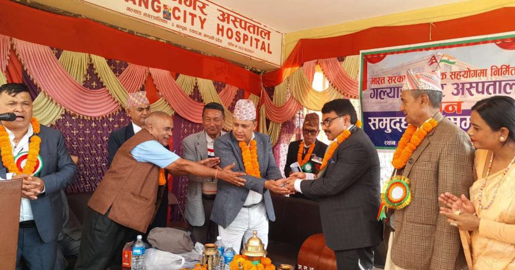 ‘नेपाल–भारत विकास सहकार्य’अन्तर्गत भारत सरकारको चार करोड आर्थिक सहयोगमा स्याङ्जाको गल्याङ नगरपालिकास्थित गल्याङ नगर अस्पताल भवन तयार भएको छ। अस्पताल भवनको जिल्ला समन्वय समिति स्याङ्जाका प्रमुख श्रीप्रसाद जिटी, गल्याङ नगरपालिकाका नगर प्रमुख गुरुप्रसाद भट्टराई र भारतीय राजदूतावास, काठमाडौंका प्रथम सचिव अविनाशकुमार सिंहले संयुक्त रूपमा उद्घाटन गरे।