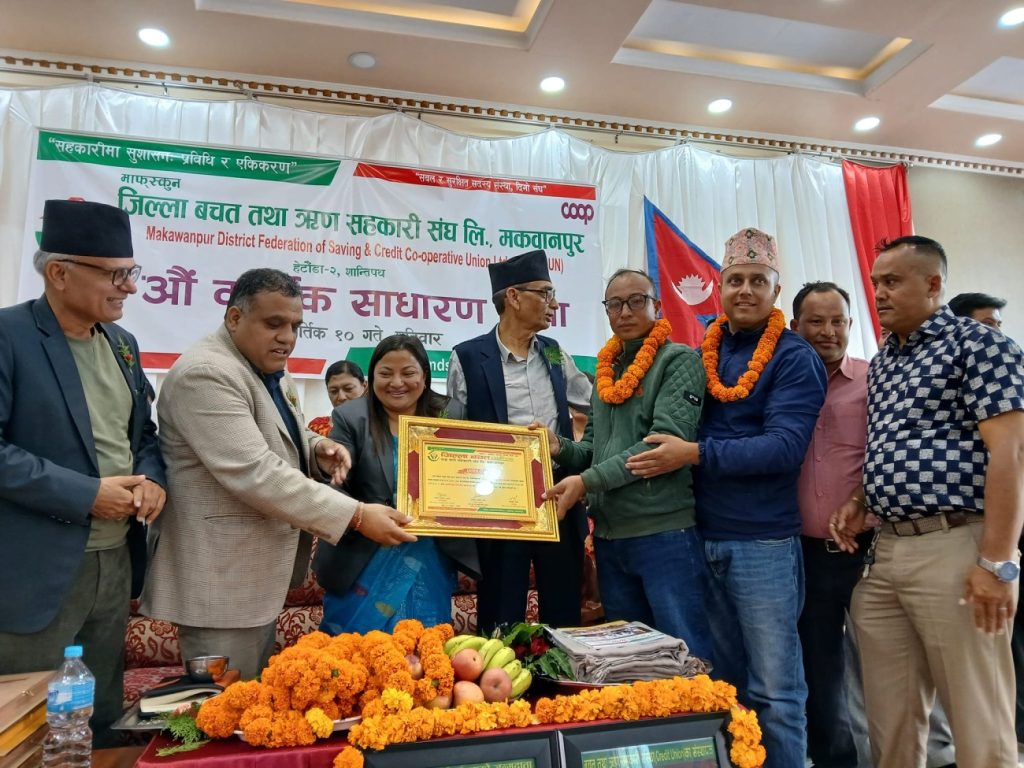 यसैबीच सोही अवसरमा संघले दैनिक कारोबारमा उत्कृष्ट ठहर गर्दै थाहा नगरपालिका वडा नम्बर ७ स्थित कुटेश्वरी महिला बचत तथा ऋण सहकारी संस्था लिमिटेडलाई सम्मान गरेको छ ।
