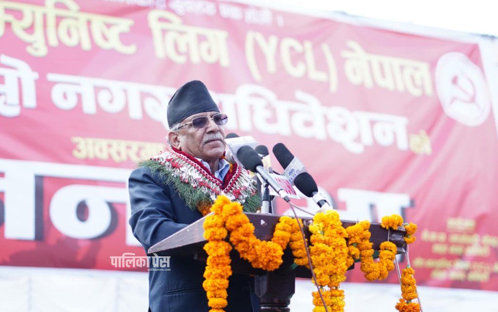 माओवादी अध्यक्ष प्रचण्ड सभामा सम्बोधन गर्दै । फोटो: श्रीकृष्ण श्रेष्ठ/पालिका प्रेस