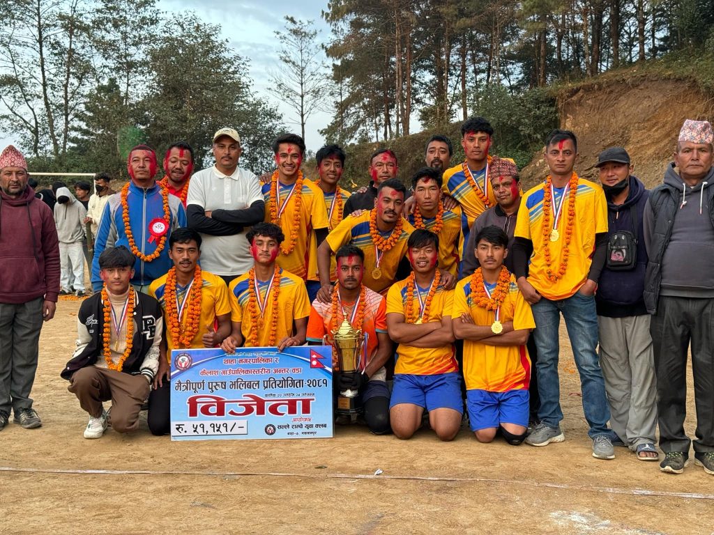 थाहा नगरपालिका वडा नम्बर २ भलिबल टिमले आयोजक सल्ले राम्चे युवा क्लब ‘ए’ लाई पराजित गर्दै थाहा–कैलाश पालिकास्तरीय अन्तरवडा भलिबल प्रतियोगिताको उपाधि उपाधि चुमेको छ । थाहा नगरपालिका वडा नम्बर ७ डाँडाबास स्थित खेल मैदानमा भएको फाइनल खेलमा आयोजक ‘ए’ लाई १५–२५, २५–२१, २१–२५, २५–२२ र १५–९ को अन्तरले पराजित गरेको हो ।