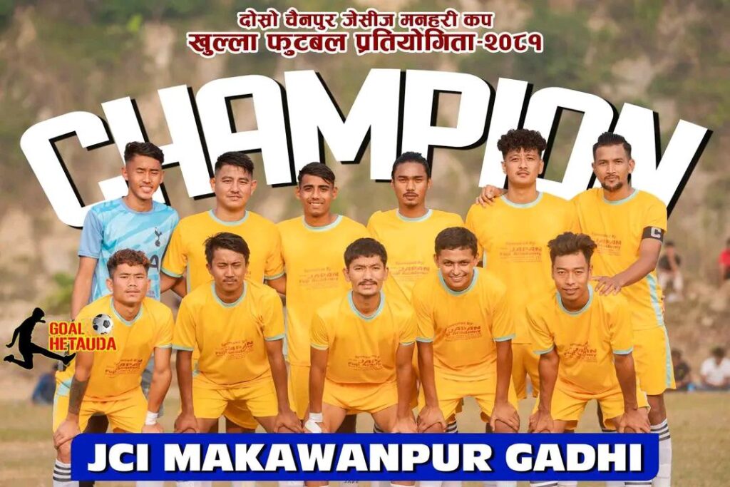 मकवानपुरगढी गाउँपालिकामा क्रियाशील मकवानपुरढी जेसीजले दोस्रो संस्करणको चैनपूर जेसीज कप फुटबल प्रतियोगितामा उपाधि जितेको छ । ३ मंसिरमा मनहरी गाउँपालिका–४ मसिनेको गोलघर खेलमैदानमा भएको फाइनल खेलमा हेटौंडा–१९ को एफसी परेलीलाई १–० गोलअन्तरले पराजित गरी जेसीआई मकवानपुरगढीले च्याम्पियनसिप प्राप्त गरेको हो ।
