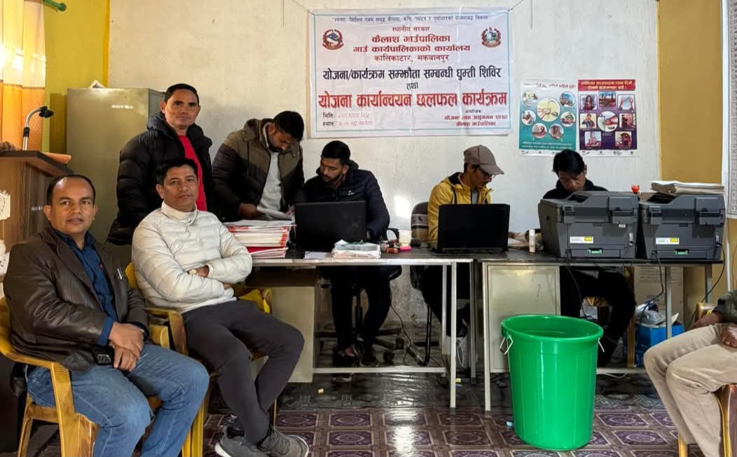 मकवानपुरको कैलाश गाउँपालिकाको कार्यालयले वडा–वडामै गएर योजना सम्झौता गरिरहेको छ । पालिकाको आर्थिक वर्ष २०८१÷८२ को बिनियोजित बजेटको पहिलो चरणको कार्यादेश आएका सबै योजनाहरूको सम्झौता प्रत्येक वडामा पुगेर घुम्ती शिविर संचालन गरेर गरिरहेको गाउँपालिका अध्यक्ष लोक बहादुर मोक्तानले बताए ।
