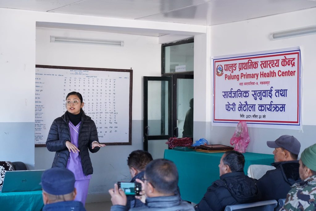 थाहा नगरपालिकामा रहेको पालुङ प्राथमिक स्वास्थ्य केन्द्र (प्रस्तावित १५ शैया पालुङ अस्पताल) को आयोजनामा ३० मंसिरमा सार्वजनिक सुनुवाइ गरेको छ । केन्द्रले आफ्नै कार्यालयमा एक समारोहकाबीच सार्वजनिक सुनुवाइ कार्यक्रम गरेको हो ।