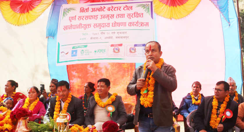 खानेपानी तथा सरसफाईका लागि तोकिएको सूचकको पालना गर्दै मकवानपुरको कैलाश गाउँपालिकाका विभिन्न टोलबाट पूर्ण सरसफाई उन्मुख तथा सुरक्षित खानेपानीयुक्त टोलको घोषणा गरिएको छ । १२ पुसमा कैलाश गाउँपालिका–९ को बिर्ता, अम्बोटे र बरेटार टोललाई पूर्ण सरसफाई उन्मुख घोषणा गरिएको हो ।