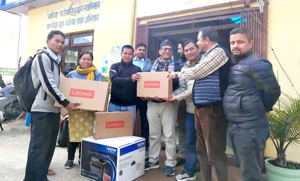 गाउँपालिका अध्यक्ष धर्मराज लामिछानेलगायतले विद्यालय र स्वास्थ्य चौकीलाई ल्यापटपसहितको उपकरण हस्तान्तरण गरे । बकैया गाउँपालिका ११ गमलटारस्थित प्रगतिशील प्रावि, आहालडाँडास्थित बुद्ध प्रावि, मोरङ्गेस्थित लालकिरण प्रावि., पीपलडाँडा बेंसीस्थित बाघ भैरव प्रावि. र बकैया गाउँपालिका ११ सिमातस्थित स्वास्थ चौकीलाई एक–एक थान गरी पाँच वटा ल्यापटप प्रदान गरिएको बकैया गाउँपालिका –११ का वडाध्यक्ष गोपालबहादुर लामाले जानकारी दिए ।
