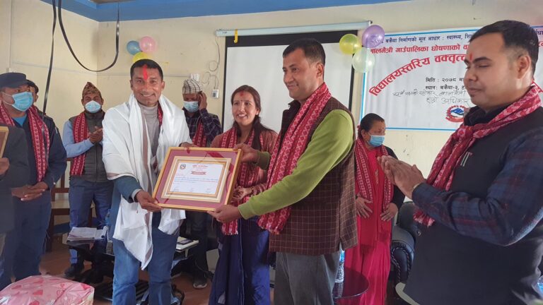 गाउँपालिकाले बालअधिकारकर्मी सिविन बालहेल्पलाइन हेटौंडाका प्रमुख झविन्द्र ज्ञवाली र मामाघर नेपालका परिकल्पनाकार एवम् संरक्षक अर्पण पराजुली र स्थानीय बालअधिकारकर्मी भक्त भोलनलाई सम्मान गरेको छ । सिमोन भोलनको अध्यक्षतामा भएको वार्षिकोत्सव समारोहमा गाउँपालिकाका अध्यक्ष दामोदर खनालको प्रमुख आतिथ्य रहेको थियो । कार्यक्रममा गाउँपालिकाकी उपाध्यक्ष सरला बोलखे, प्रमुख प्रशासकीय अधिकृत लक्ष्मण पुडासैनीको पनि आतिथ्य रहेको थियो ।