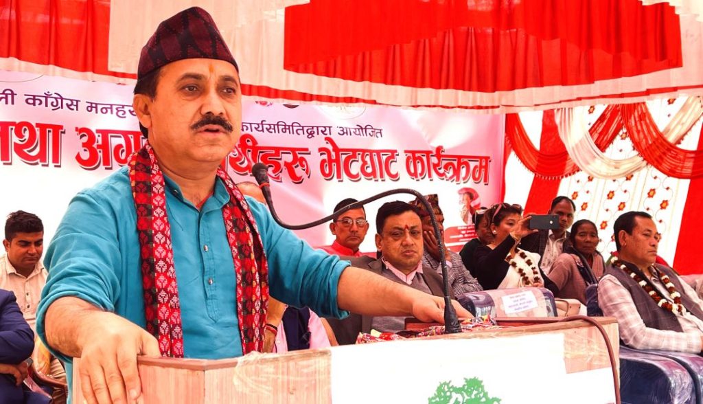 मकवानपुरको मनहरी गाउँपालिकामा २२ फागुनमा आयोजित अगुवा कार्यकर्ता भेलालाई सम्बोधन गर्दै उनले बर्तमानमा नेपाली काँग्रेसले प्राप्त गरेको उपलब्धिको अधिकतम उपयोग गरेर जनहितकारी काम गर्नुपर्नेमा जोड दिए । उनले भने–‘धेरैले २०८४ सालको चर्चा गर्छन्, हामीले गर्नेगरेका छौं । तर अहिले क्रियाशील जनप्रतिनिधिहरुले २०८४ किन पर्खनुपर्ने, अहिल्यै जनतासामु देखिने काम गर्नु पर्दैन ?’