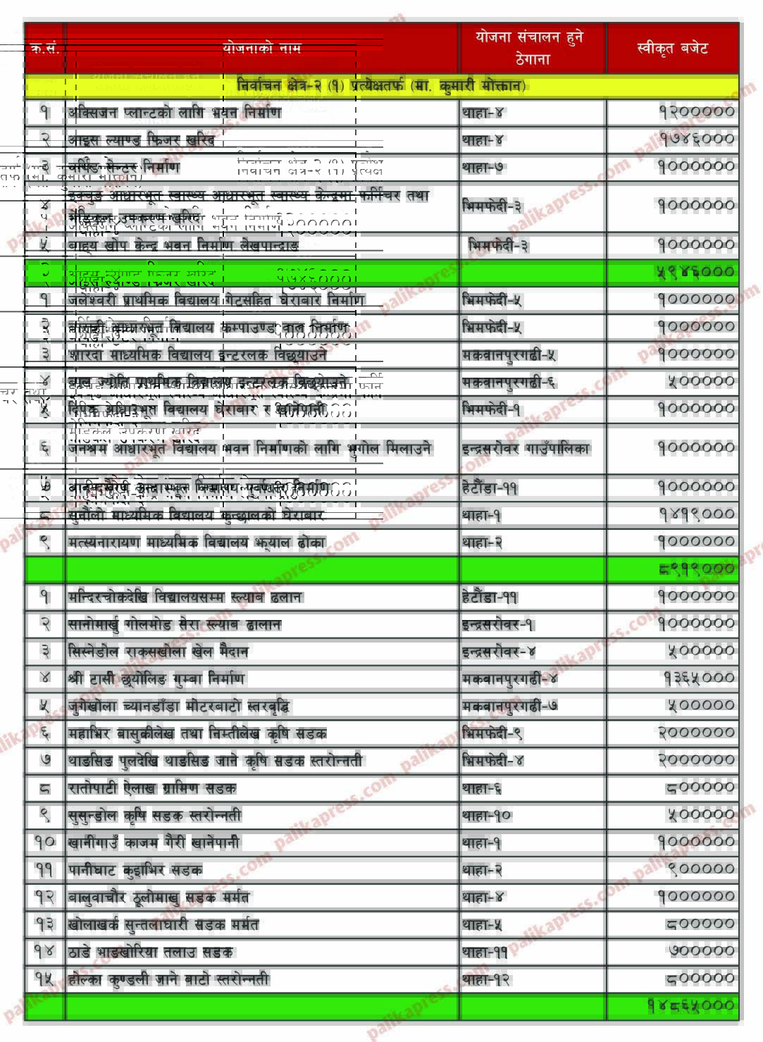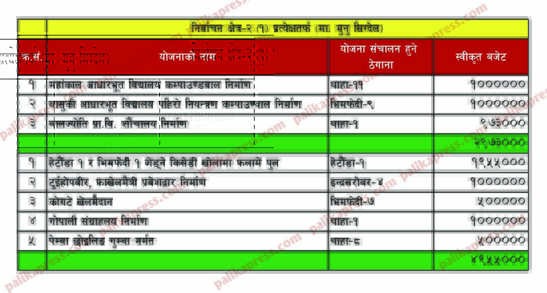 हेर्नुहोस् योजनाको नामावली र बजेट: