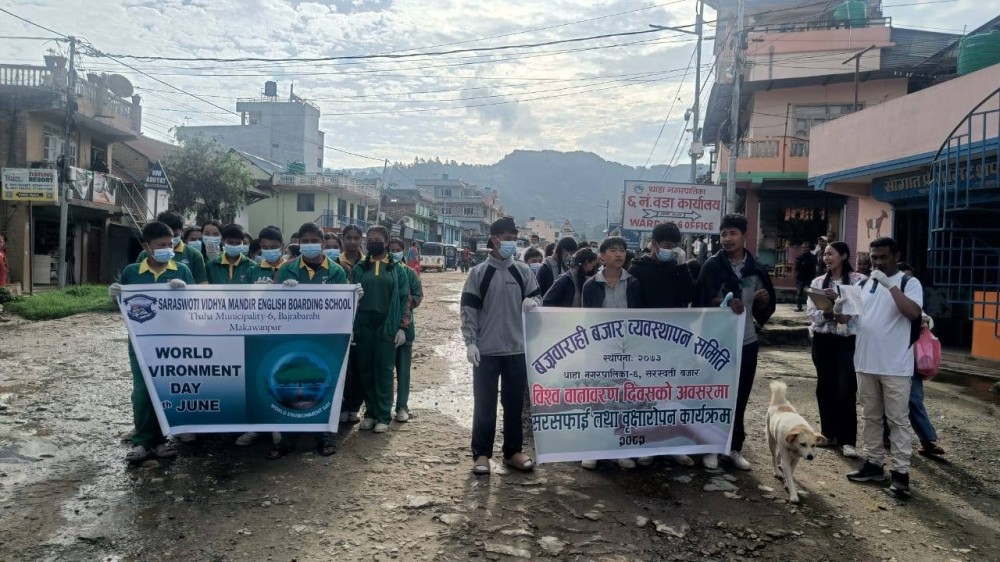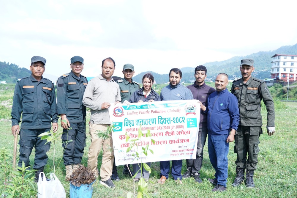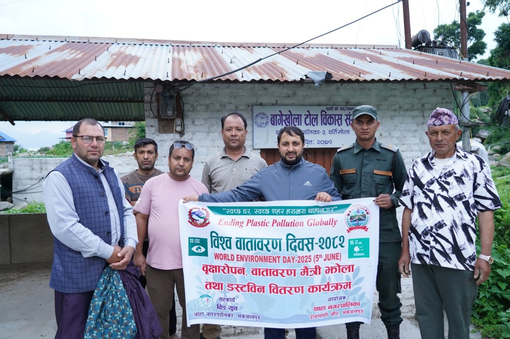 कार्यक्रममा थाहा नगरपालिकाका नगर प्रमुख विष्णु बहादुर बिष्टले स्वच्छ वातावरणमा बाँच्न पाउने संवैधानिक हकलाई व्यवहारमा उतार्न सबैले संकल्प गर्नुपर्ने बताए । उनले जलवायु परिवर्तन र प्लास्टिक प्रदूषणको चुनौती समाधान गर्न वृक्षारोपण अपरिहार्य रहेको बताए । हरितगृह ग्यासको उत्सर्जन कम गर्न वन जंगलको संरक्षण, संवद्र्धन र विकासमा जोड दिनुपर्ने उल्लेख गरे ।