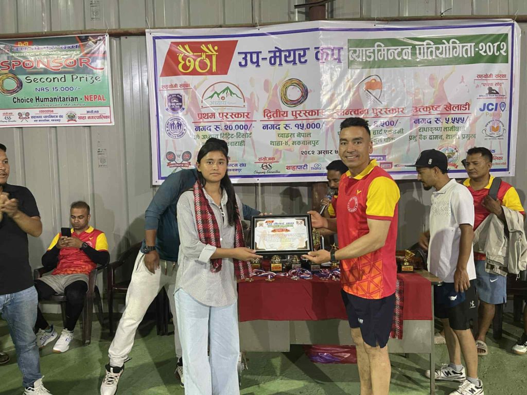 थाहानगर ब्याडमिन्टन संघले दुई खेलाडीलाई ७ असारमा सम्मान गरेको छ । संघको व्यवस्थापनमा भएको छैठौं संस्करणको उपमेयर कप नगरस्तरीय व्याड्मिन्टन प्रतियोगिताको उद्घाटन कार्यक्रमको अवसरमा खेलाडी सम्मान गरिएको हो ।