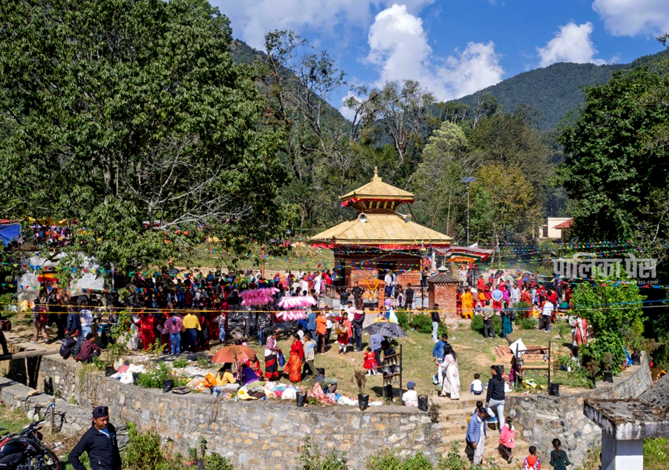 थाहा–१० स्थित विसिङखेलको चम्पाकेश्वर मन्दिरमा लागेको मेला । फोटोः विशाल रायमाझी/पालिका प्रेस
