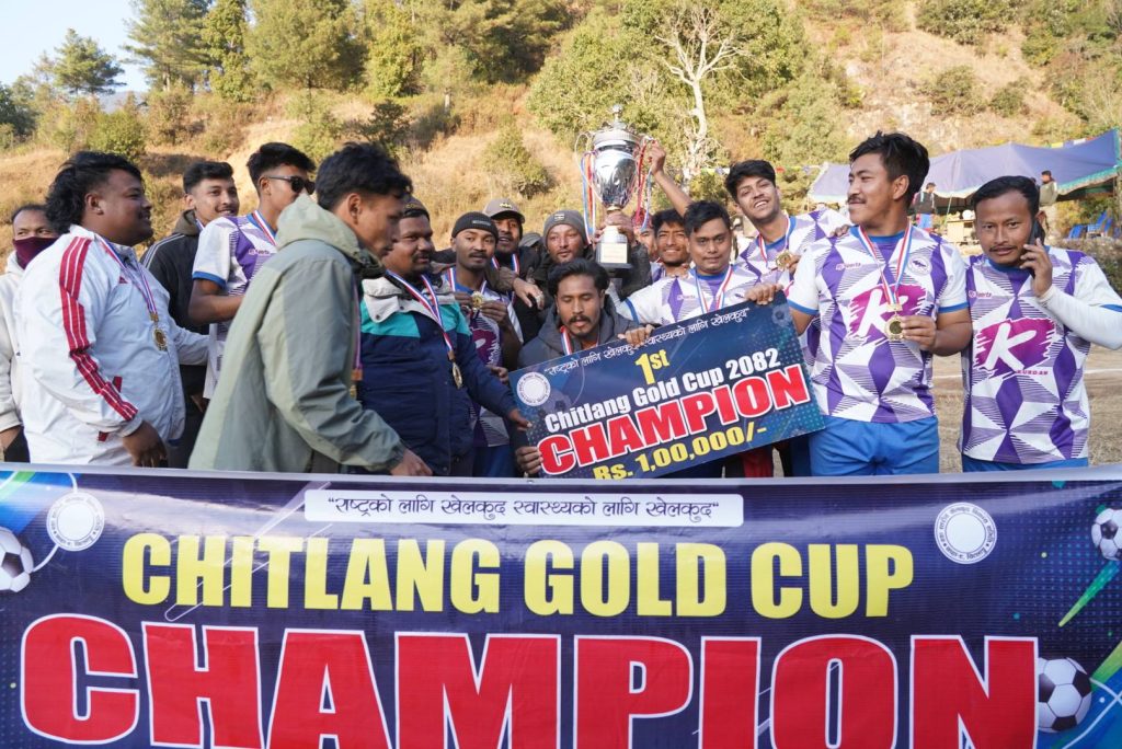 २७ पुसबाट चित्लाङको फुटबल मैदानमा भएको प्रतियोगिताको समापन तथा पुरस्कार वितरण समारोह चित्लाङ खेलकुद विकास समितिका अध्यक्ष अमर सिंह ठकुरीको अध्यक्षतामा भएको थियो । कार्यक्रममा थाहा नगरपालिका वडा नम्बर ९ का वडा अध्यक्ष राजकुमार बलामी, वडा नम्बर ७ का अध्यक्ष शिवराज थिङ, निर्माण व्यवसायी जयराम लामिछाने, जनप्रतिनिधि, खेलप्रेमी तथा स्थानीयवासीहरूको उपस्थिति रहेको थियो।