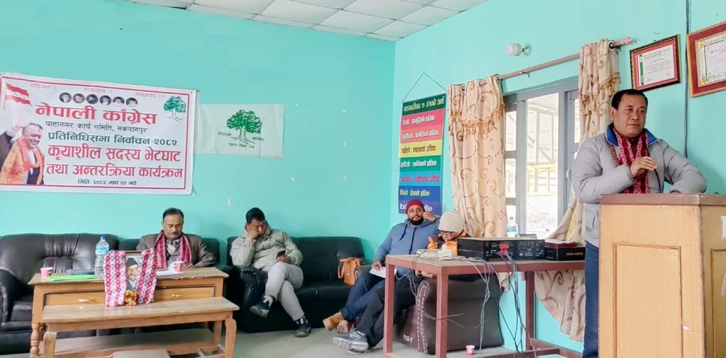 नेपाली काँग्रेस मकवानपुर–२ ले २१ फागुनमा हुने प्रतिनिधिसभा निर्वाचन केन्द्रित भेटघाट तथा अन्तरक्रिया कार्यक्रम गरेको छ । काँग्रेसले थाहा नगरपालिकाको थाना बजार स्थित एक हलमा २० माघमा क्रियाशील सदस्यहरुबीच छलफल तथा अन्तरक्रिया कार्यक्रम गरेको हो ।