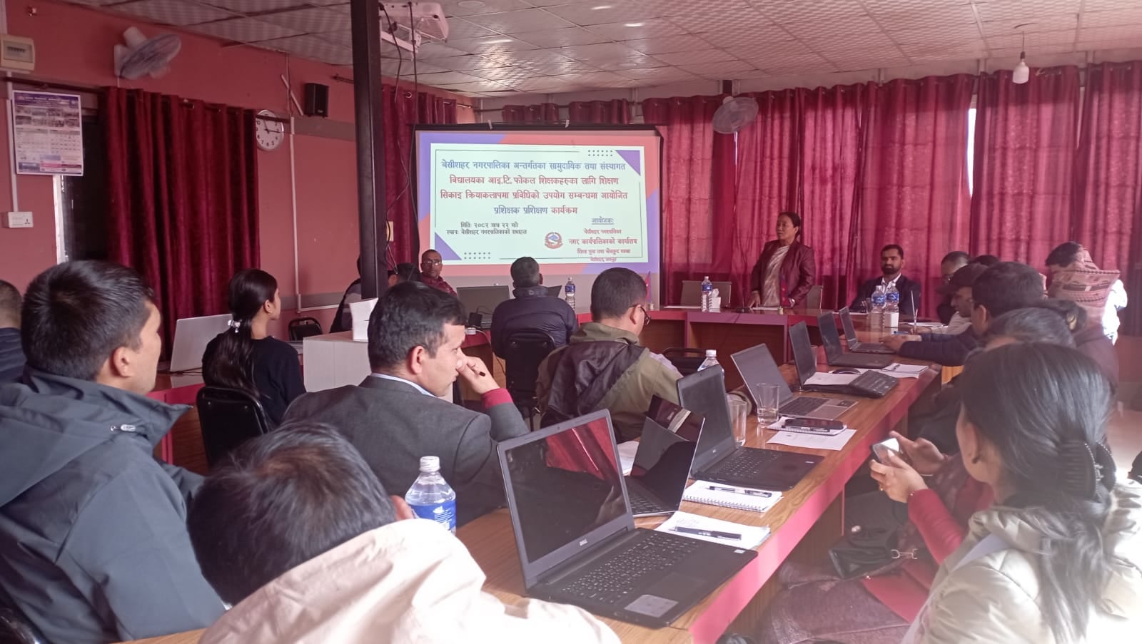 कार्यक्रममा नगरपालिकाका कम्प्युटर अपरेटर रेशम घिमिरेले साइबर क्राइमबाट कसरी बच्ने र डिजिटल साक्षरता सम्वन्धी जानकारी गराउनुभएको भने प्रशिक्षक शिक्षक प्रकाश न्यौैपानेले शिक्षामा आवश्यक पर्ने नेपाल सरकारका डिजिटल वेवसाइड, साथै पछिल्लो समय बढ्दै गैरहेको कृतिम बुद्धिमत्ता (ए.आइ.) बाट कसरी सहज तरिकाले समस्याको समाधान गर्न सकिन्छ भन्ने बारेमा जानकारी गराए ।
