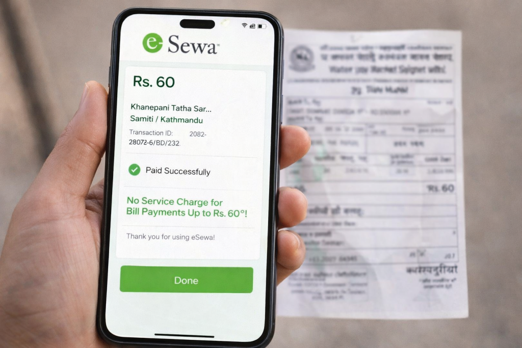 डिजिटल भुक्तानी सेवा प्रदायक इसेवाले सामुदायिक खानेपानी उपभोक्ताका लागि सेवा शुल्क संरचनामा परिवर्तन गरेको छ। अब इसेवा मार्फत रु. ६० सम्मको खानेपानी बिल भुक्तानी गर्दा कुनै पनि सेवा शुल्क लाग्ने छैन।