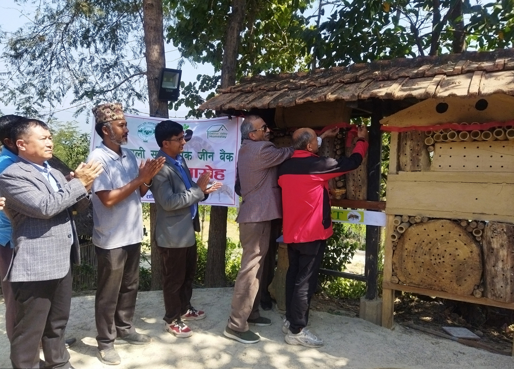 कृषि आनुवंशिक स्रोत केन्द्र जिन बैंक नार्क ललितपुरको आयोजना र रैथाने एग्री प्रोडेक्ट नेपालको सहकार्यमा सञ्चालित सामुदायिक जिन बैंक तथा किरा फिल्ड जिन बैंक स्थापना गरिएको हो । यसको संरक्षणका लागि सामुदायिक जिन संरक्षण सञ्जाल पनि गठन गरिएको छ । नार्कका किट विज्ञ आरपी मैनालीका अनुसार सामुदायिक जिन बैंकअन्तर्गत अहिले यहाँ किराका लागि उपयुक्त वातावरण तयार गरिएको छ । ‘माहुरीका लागि घार बनाए जस्तै यहाँ किरा बाँच्ने वातावरण बनाइएको हो,’ उनले भने, ‘सामुदायिक जिन बैंकअन्तर्गतको जिन किरा बैंक पनि एउटा हो ।’