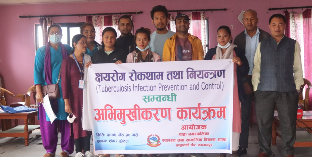 क्षयरोग मुक्त नेपाल अभियानअन्तर्गत् थाहा नगरपालिकामा क्षयरोग रोकथाम तथा नियन्त्रणसम्बन्धी अभिमुखीकरण कार्यक्रम २० जेठमा सम्पन्न भएको छ । थाहा नगरपालिकाको आयोजनामा शिखरकोटस्थित शंकर होटलमा कार्यक्रम भएको हो ।