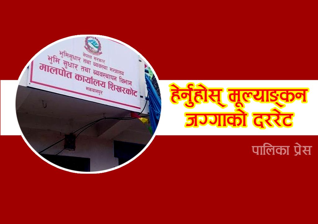 आर्थिक वर्ष २०७९/०८० बाट लागु हुने गरी मालपोत कार्यालय शिखरकोट अन्तर्गतको जग्गाको न्यूनतम मूल्य निर्धारण भएको छ । जिल्ला प्रशासन कार्यालय मकवानपुरमा मुल्य निर्धारण समितिका अध्यक्ष एवम् प्रमुख जिल्ला अधिकारी राजेन्द्र देव पाण्डेको अध्यक्षतामा बसेको बैठकले न्यूनतम मूल्याङ्कन निर्धारण गरेको हो । निर्णय १ श्रावणबाट लागु हुनेछ ।