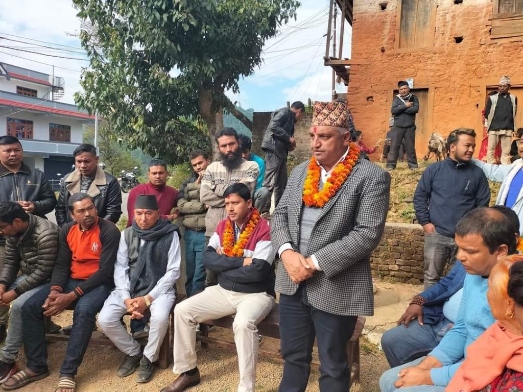 थाहा नगरपालिका वडा नम्बर १० मा एमालेको आयोजनामा भएको कार्यकर्ता भेटघाट कार्यक्रममा बोल्दै उनले आम मतदान र यस क्षेत्रका लागि पाँच बर्ष असली सेवक बन्ने र यस क्षेत्रका नागरिकको घर आगनमा रहने बताए । अर्का उम्मेदवार प्रति लक्षित गर्दै उनले भने,–‘आफ्नो घर जलाएर खरानी बनाएर एक थान मन्त्रीको लोभमा फसेर पाटी फुटाएर गएर चुनाव जितेर गएपछी आफ्नो निर्वाचन क्षेत्रमा कति पटक जनताको माझ आउनु भयो र अहिले मलाइ फुचे भन्दै हिड्नु भएको छ भन्दै हिड्नु भएको छ भन्ने सुनेको छु ।’