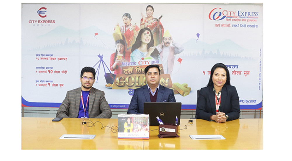सिटी एक्सप्रेस मनी ट्रान्सफरले ‘विदेशबाट सिटी आयो, दसैँ तिहारलाई गोल्डेन बनायो’ योजनाअन्तर्गत मेगा बम्पर उपहार विजेताको नाम घोषणा गरेको छ। विद्युतीय प्रणालीद्वारा विजेता छनोट गर्दा साउदी अरबबाट रेमिट्यान्स पठाएका जीवन रायमाझीले ५ तोला सुन जितेका छन्।