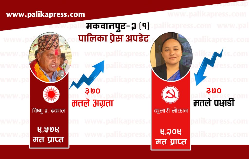 मकवानपुर प्रतिनीधिसभा २ (१) मा नेकपा एमालेका विष्णु प्रसाद ढकालले सत्ता गठबन्धनकी उमेद्वार कुमारी मोक्तानसंगको मतान्तर बढाएका छन् । लगातार २ पटक सांसद भैसकेकी मोक्तानलाई एमालेका ढकालले पछि पार्दै मतान्तर बढाएका हुन् ।