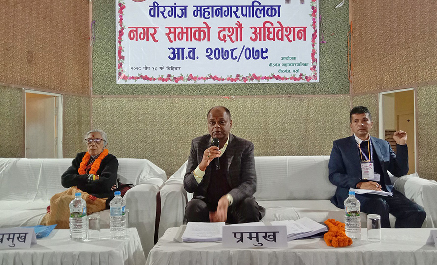 वीरगञ्ज महानगरपालिकाको दशौं नगरसभाको उद्घाटन सत्रमा वडासदस्य सुरज कुर्मीले सबै वडा सदस्यलाई एक÷एक वटा मोवाइल किनिदिन आग्रह गरे ।