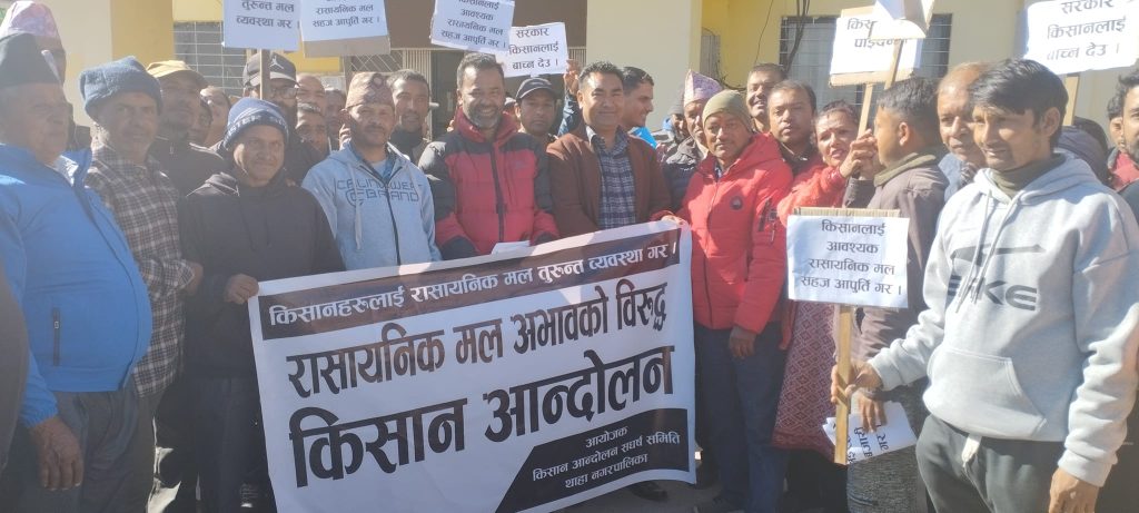 मकवानपुरको थाहा नगरपालिकामा रसायनिक मल नपाएको भन्दै किसानहरु आन्दोलित भएका छन् । थाहानगरको खेतबारीमा आलु रोप्ने बेला भएको भन्दै किसान आन्दोलन संघर्ष समिति थाहानगरले मलको अभाव हटाउन नगरपालिका मार्फत सरकारलाई दबाब दिन जुटेको छ । १५ मंसिरमा नगरपालिका परिसरमा समितिको नेतृत्वमा किसानहरुले मल मागेर धर्ना दिएका हुन् ।